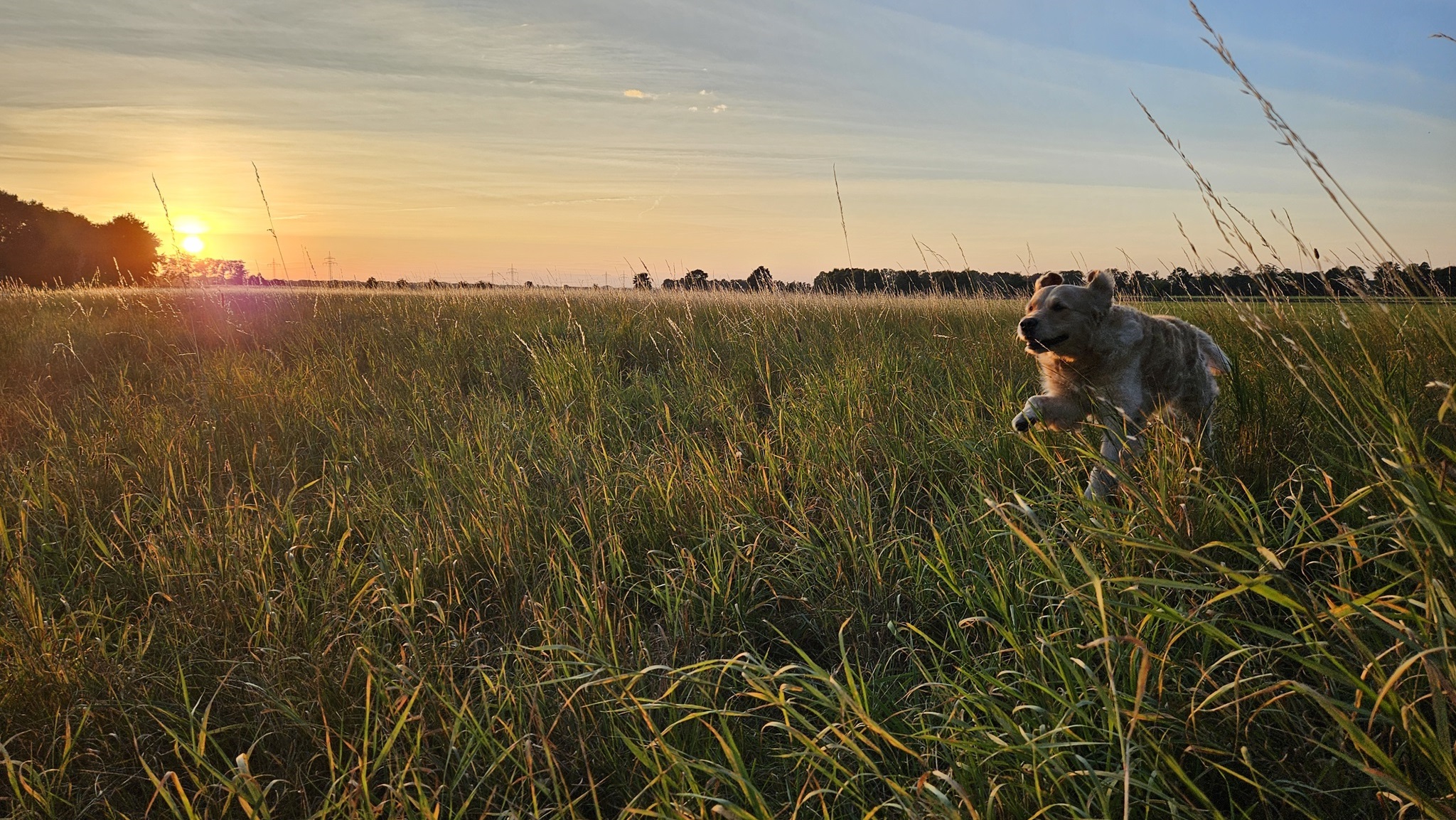 Es geht einem immer wieder das Herz auf, wenn die einstigen Babys, als große, fast erwachsene Golden auf einen zu kommen.