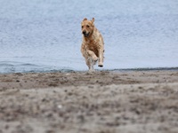 Typvolle sanfte Hündin, zunehmend freundlich, anatomisch korrekt, leicht welliges Haar mit guter Unterwolle, schöner Kopf, gut angesetzter Hals, tadellos im Stand, flüssiges Gangwerk.